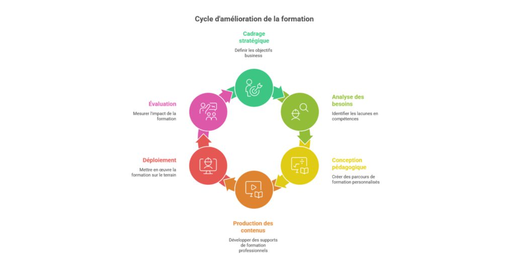 Nous déployons une ingénierie de formation sur mesure, pensée pour transformer des enjeux business concrets en compétences opérationnelles mesurables